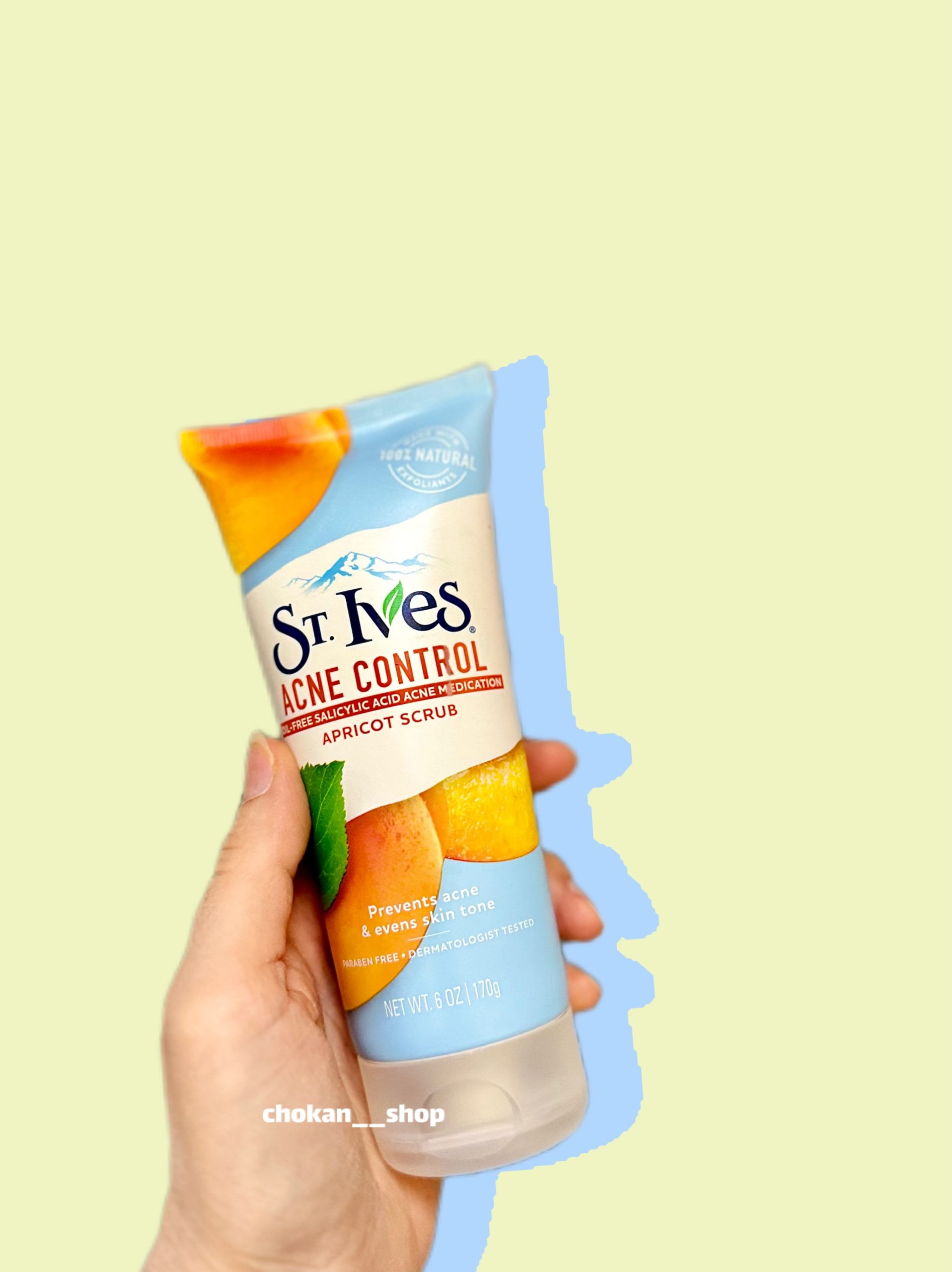 اسکراب سنت ایوز آکنه کنترل با حجم ۱۷۰ گرمی حاوی عصاره زردآلو میباشد اسکراب acne control پوست را به خوبی پاکسازی و لایه برداری می کند. منافذ پوستی را به حداقل رسانده و از ایجاد انواع جوش ا روی پوست جلوگیری می کند. بافت آن به صورت کرمی با دانه های گرانول یا اسکراب است که بافتی شنی را ایجاد کرده است. این اسکراب برای انواع پوست ها به خصوص پوستهای مستعد جوش و یا پوستهای چرب مناسب می باشد