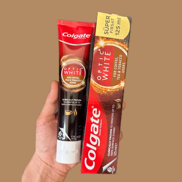 خمیر دندان ضد زردی optic white کلگیت | 125 میل این خمیر دندان خاص ، طوری طراحی شده است که زردی ها و لکه های روی دندان را در کمترین زمان کاهش داده و در طول یک الی 3 دوره مصرف ، آن را به طور کامل از بین ببرد، هر چند که توصیه میشود که استفاده ازاین خمیر دندان را قطع نکنید.