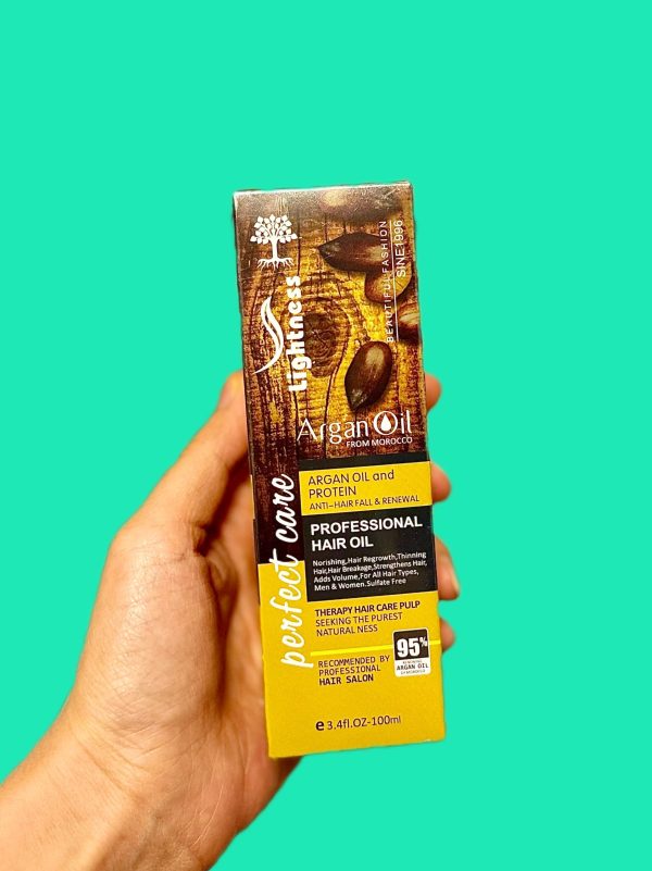 روغن مو شگفت انگیز آرگان با ویژگی های خاصی که دارد نه تنها به رطوبت رسانی موهای شما کمک می کند بلکه درخشش خاصی را برای موهای شما به ارمغان می آورد.روغن آرگان لایتنس مناسب برای انوع مو، به عنوان یکی از بهترین تغذیه کننده های مو بشمار می رود. استفاده از این روغن می تواند موهای آسیب دیده شما را ترمیم کند؛ علاوه بر این می تواند حالت وزی و مو خوره شما را درمان کند و درخشندگی و فرمی عالی به موهای شما باز می گرداند. این روغن آرگان لایتنس مناسب انواع مو، کاملاً طبیعی و خالی از هرگونه مواد شیمیایی می باشد و دارای حجم 100 میلی لیتر است.