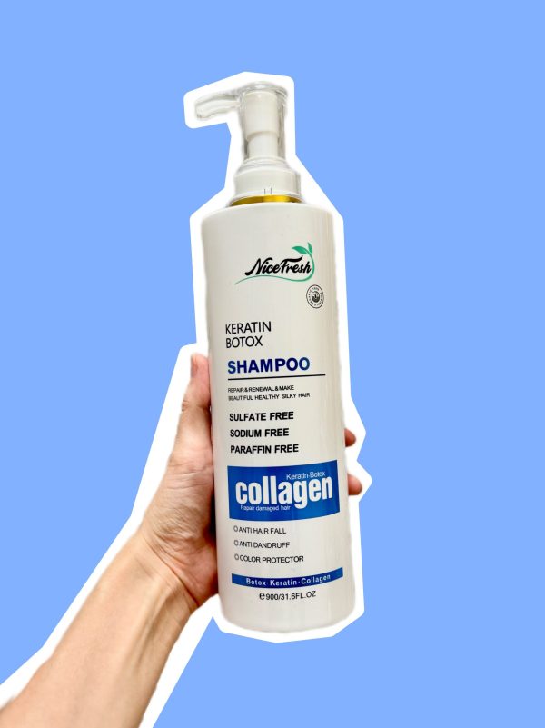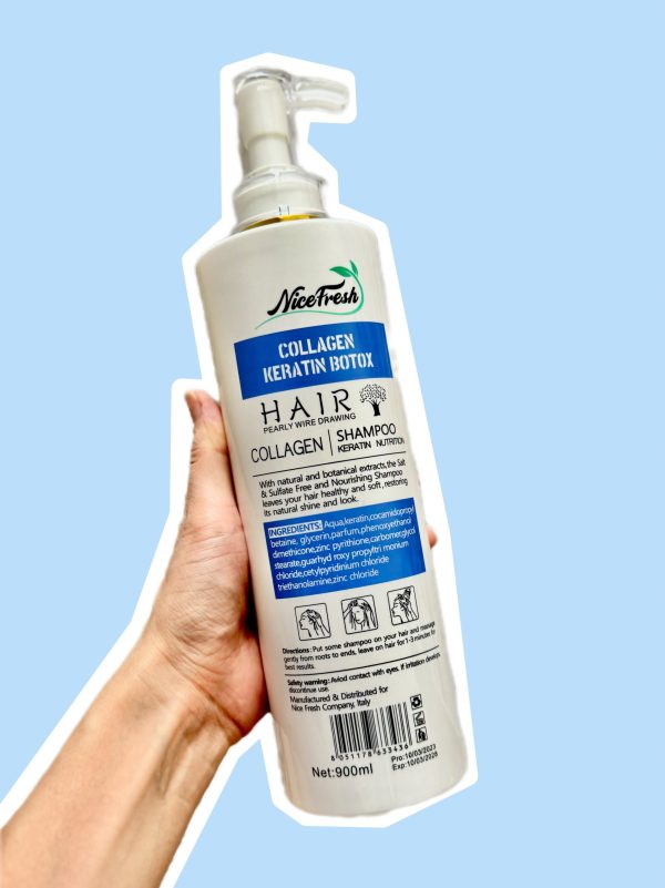 شامپو کراتینه ، بوتاکس و کلاژن ترمیم کننده موهای آسیب دیده نایس فرش 900 میلی Nice Fresh keratin . botox. collagen shampoo