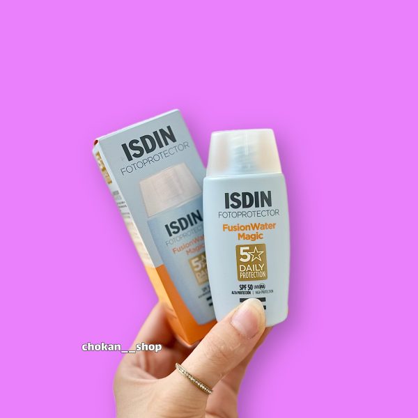 ضد آفتاب فیوژن واتر مجیک ایزدین یکی از انواع ضد آفتاب های ایزدین است که بافتی فوق العاده سبک و زود جذب روی پوست دارد و برای استفاده روزانه ایده آل است. این ضد آفتاب علاوه بر محافظت بالا از پوست در برابر اشعه های مضر نور خورشید با SPF50، پوست را رطوبت رسانی کرده چربی آن را کنترل میکند و دارای خاصیت آنتی اکسیدانی است.